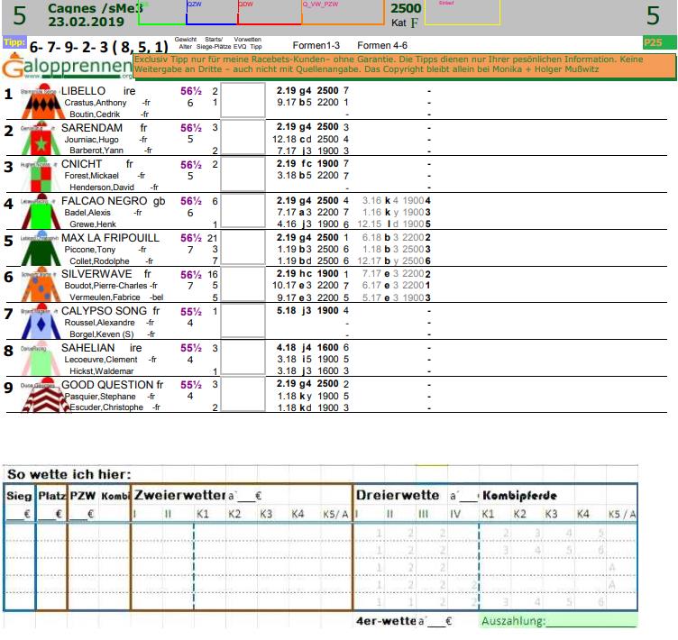 Hier die TIpps und Ergebnisse der Rennen heute (eMail gehen am 22.02. um 22:00h heraus)