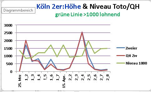 Aus dieser Sicht kann man also festhalten: Zweier und besonders die Dreierwette in Köln sind lohnend.