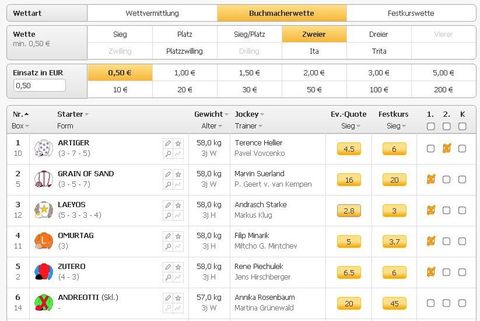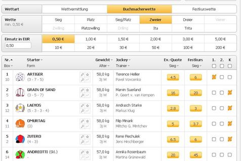 Bei Renntagen mit mehr als 10 Rennen (das ist eigentlich nur in Hamburg der Fall) sollen Sie die Rennen mit den meisten Startern unbewettet lassen, bis man auf sein Limit kommt.